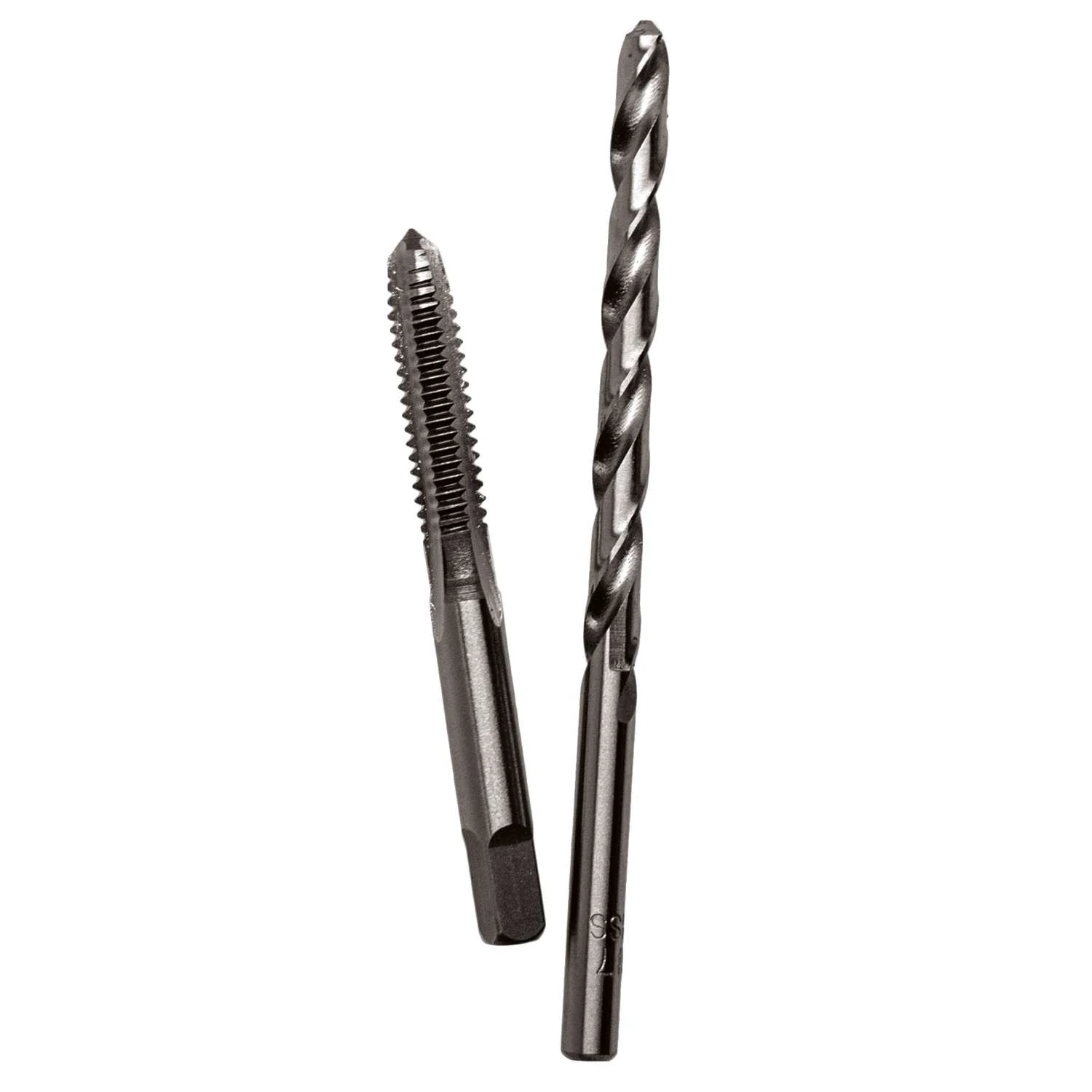 Machine screw and fractional plug taps. Precision cut threads, accurately formed for consistent, exact threading. Heat treated and tempered for file hard threads, and longer, useful life. Designed for hand cutting applications. For use with tap wrenches to cut internal threads. 75% thread engagement. Plug style is the most commonly used style of tap -3 to 5 threads chamfered. Drill bits brite. Brite industrial drill bits feature premium grade high speed steel for general purpose drilling wood, metal and plastic. No center punch needed: century quick-cut points are self-centering and penetrated faster with less pressure, will not walk or wander at the starting surface. Ground flats on the shank provide tight chucking, even with keyless chucks. 4x life rating in comparison to the average 118 degree point high speed steel drill. Drill and tap set National pipe thread tap sizes for internal threading on all types of pipe Tap is designed for hand cutting applications Brite industrial drill bits feature premium grade high speed steel for general purpose drilling in wood, metal and plastic Century 135 degree quick cut points are self-centering and penetrate faster with less pressure