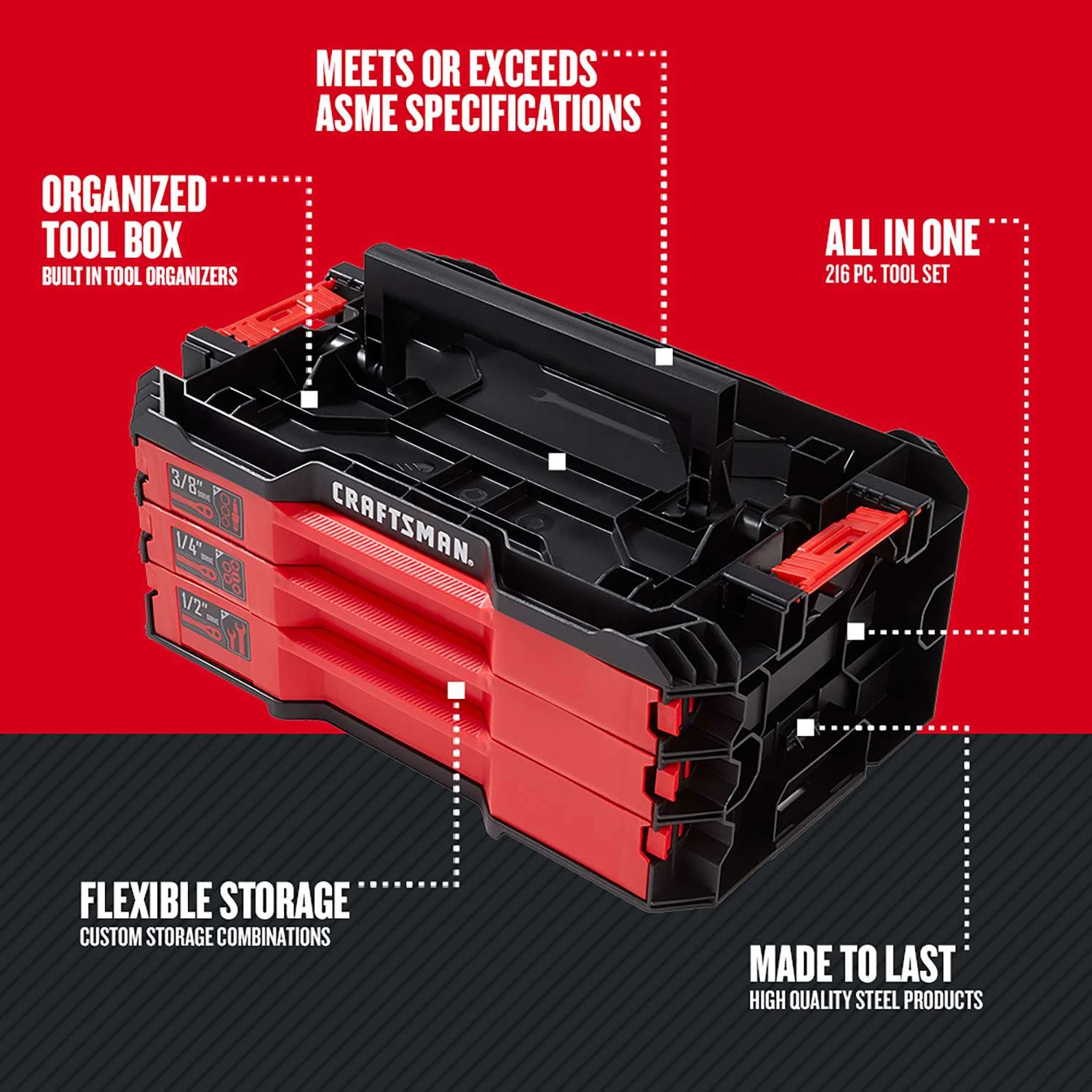 | Search Field | Craftsman VersaStack 1/4, 3/8 and 1/2 in. drive Metric and SAE 6 Point Mechanic's Tool Set 216 pc Hand Tools Sockets SOCKETS AND ACCESSORIES SOCKET AND WRENCH SETS BLACK AND DECKER US INC Craftsman VersaStack 0.5__rexuom__in 1/2__rexuom__in 0.5__rexuom__inch 1/2__rexuom__inch 216__rexuom__pc 216__rexuom__piece |