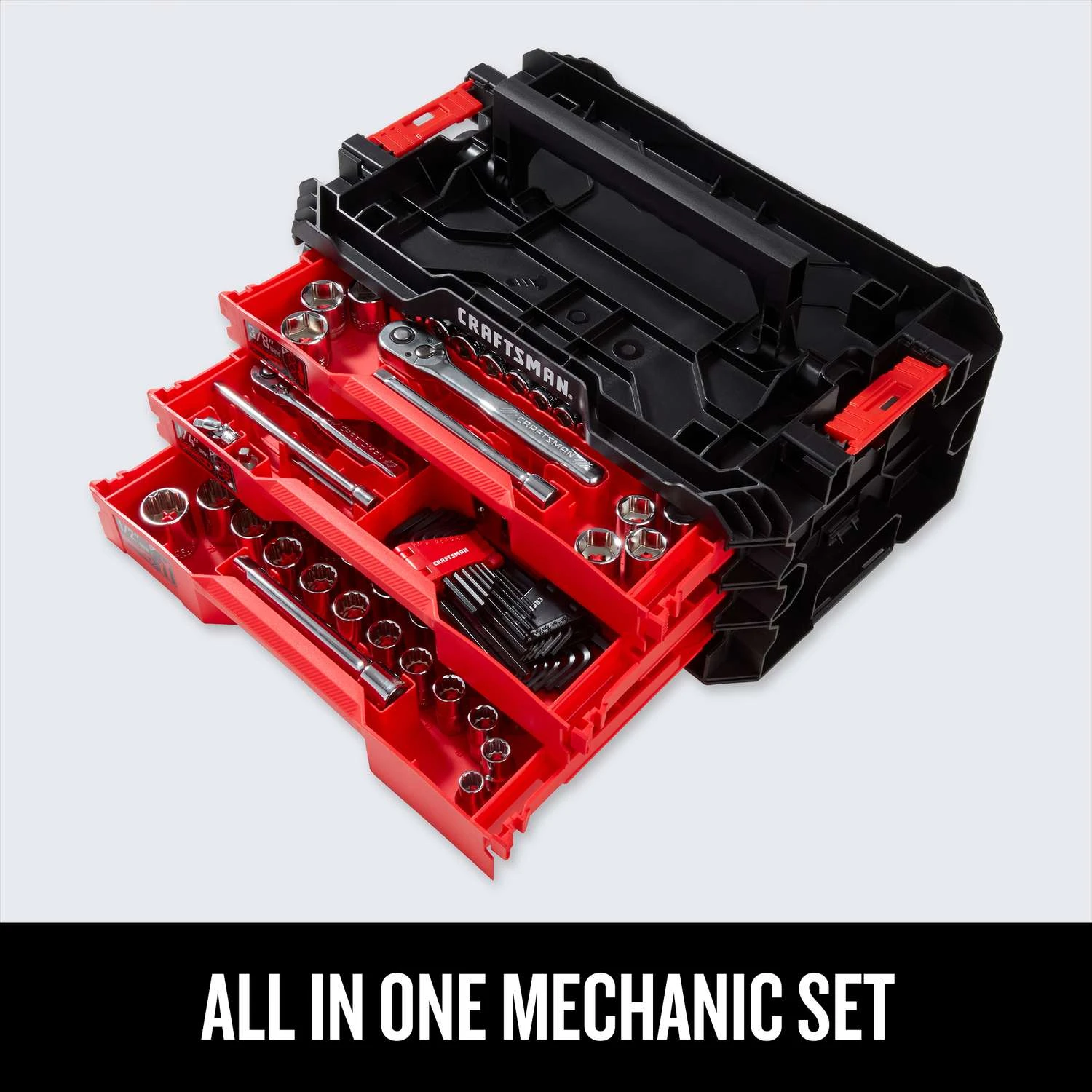| What's Included | (3) Drive Ratchets: 1/4-in., 3/8-in. & 1/2-in. (111) Standard and Deep 6-Point Sockets (2) 3/8" Drive Spark Plug Sockets (8) Ratchet Accessories (14) Combination Wrenches (1) Magnetic Nut Driver (16) Nut Bits (28) Hex Keys (33) Specialty Bits |